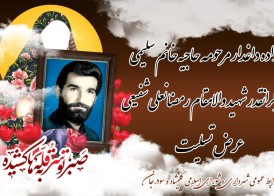 ﴿اناللّه و انا الیه راجعون﴾ با نهایت تأثر و اندوه، درگذشت حاجیه خانم سلیمی، همسر گرانقدر شهید والامقام رمضانعلی شفیعی را به خانواده معظم آن بانوی...