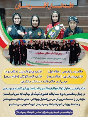 کسب عناوین درخشان و افتخارآفرینی دختران کونگفوکار فرهنگسرای اندیشه شهرداری کلیشاد و سودرجان در چهل و هفتمین...