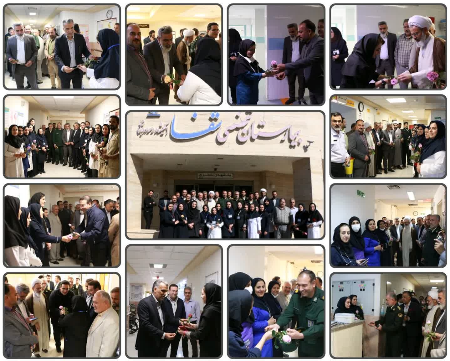 صبح امروز پنجم آبان، همزمان با میلاد باسعادت حضرت زینب کبری(س) و روز پرستار، شهردار و رئیس شورای اسلامی شهر کلیشاد و سودرجان به همراه امام جمعه و بخشدار مرکزی شهرستان فلاورجان، پرسنل نیروی انتظامی و سپاه شهرستان، رئیس شبکه بهداشت و درمان و جمعی از مسئولین با حضور در بیمارستان تخصصی شفا کلیشاد و سودرجان، این مناسبت فرخنده را به کادر درمان بیمارستان تبریک گفتند و با اهدای گل به پرستاران از تلاشهای بیوقفه و فداکارانه آنان در مسیر حفظ سلامت جامعه تجلیل و قدردانی نمودند.