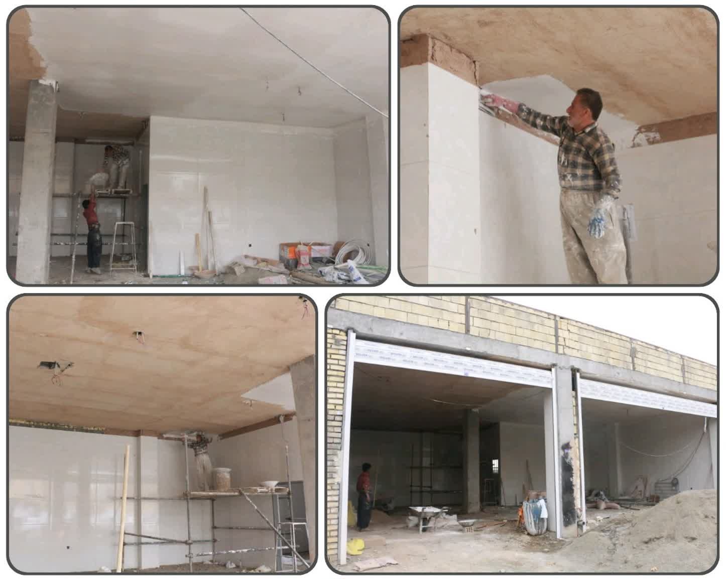 گچکشی و سفیدکاری داخلی ساختمان در حال انجام است