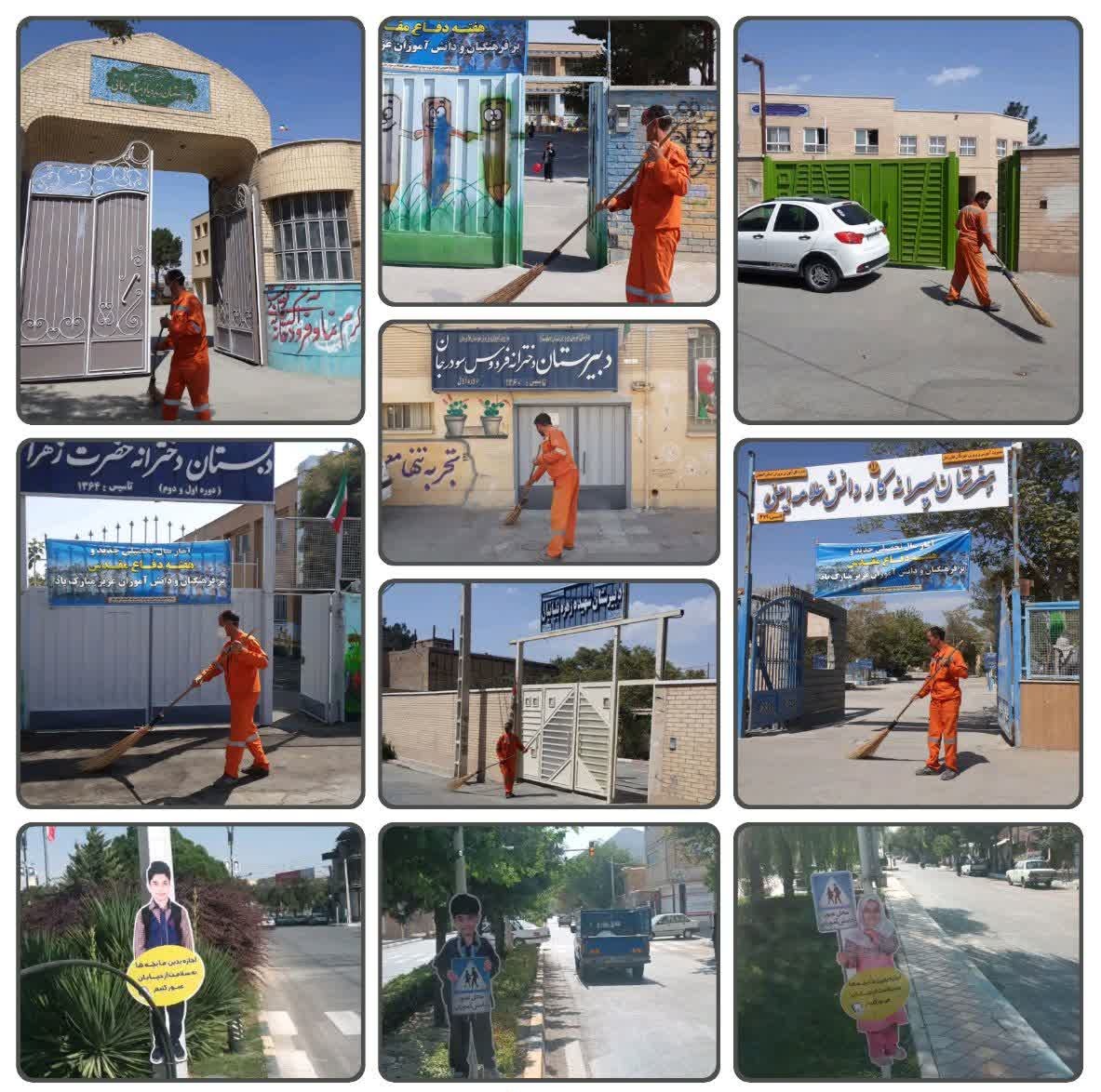 رفت و روب و نظافت معابر و مسیرهای منتهی به مدارس شهر