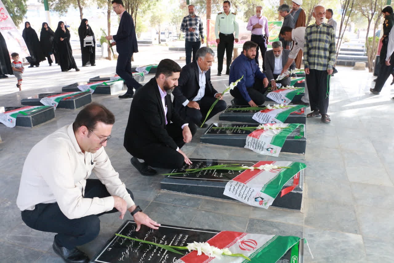 حاضرین در این آیین معنوی، ضمن قرائت فاتحه و نثار گل بر مزار شهدای سرافراز، یاد و خاطره دلیرمردانی را که جان خود را در راه دفاع از ایران اسلامی فدا کردند، گرامی داشتند.