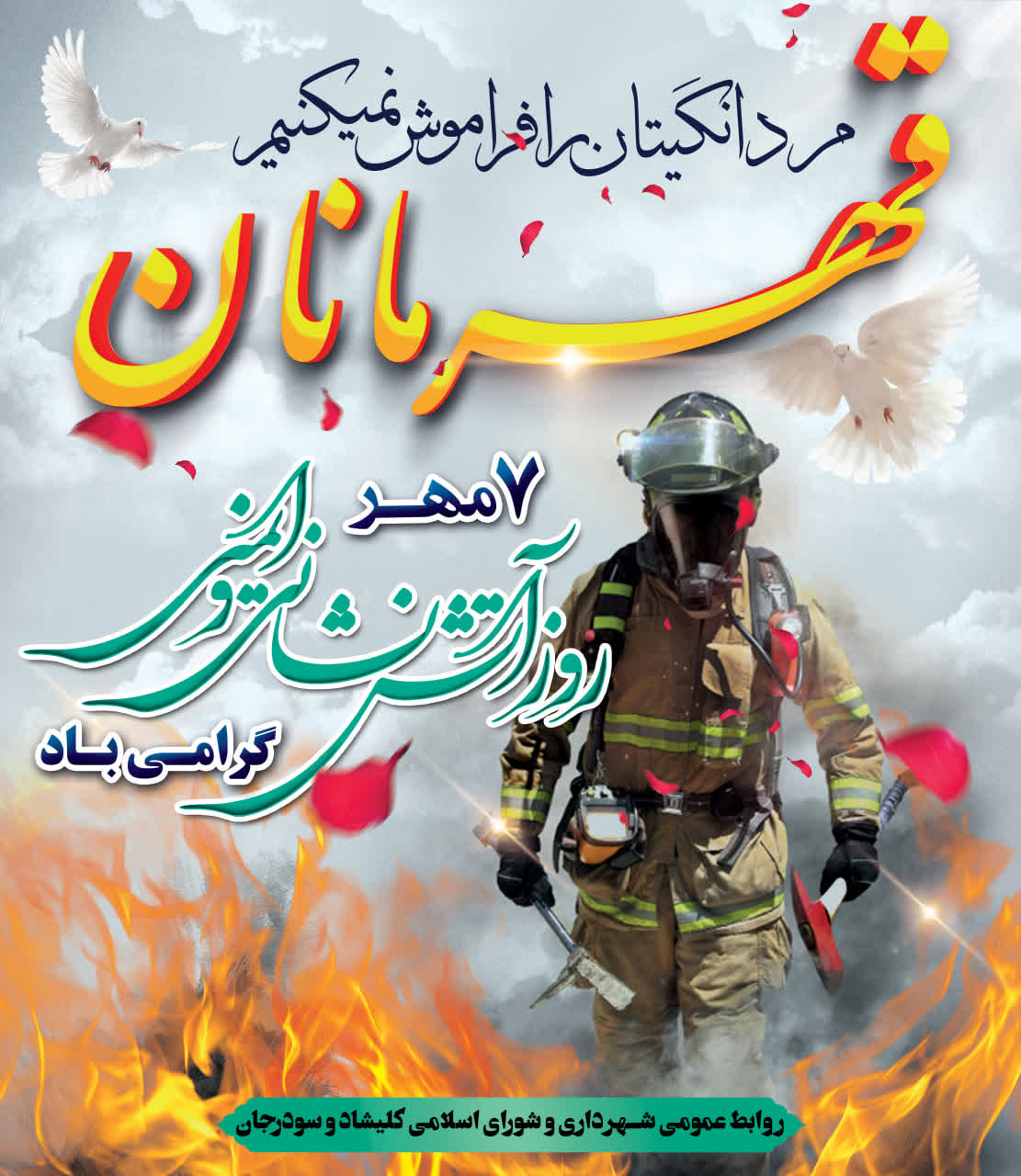 به گزارش روابط عمومی، شهردار و اعضای شورای اسلامی کلیشاد و سودرجان، طی پیامی مشترک، فرارسیدن هفتم مهرماه، روز آتش‌نشانی و ایمنی را تبریک گفتند؛