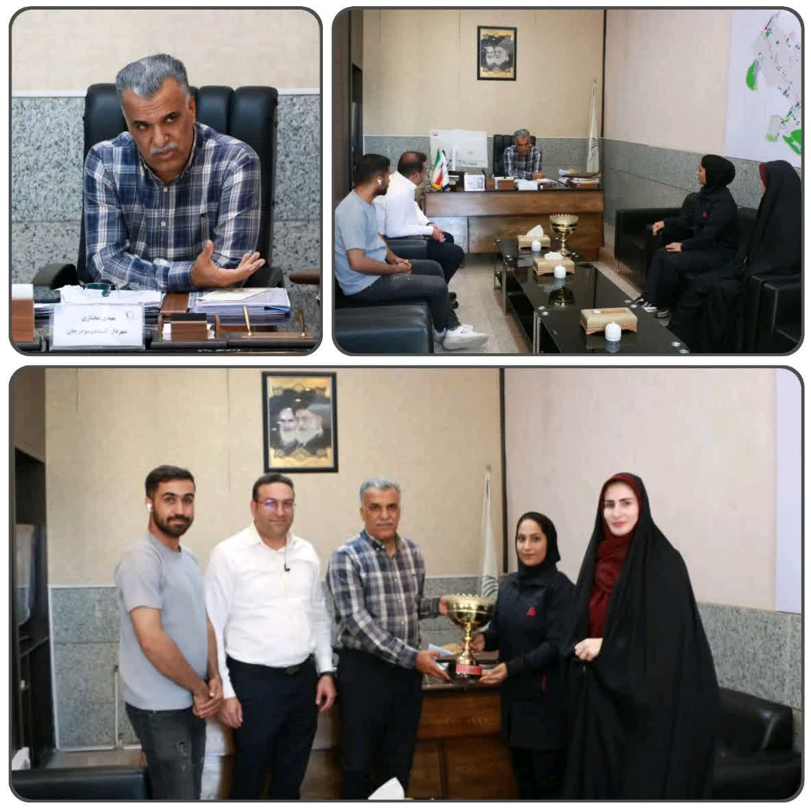 در این دیدار که در پی کسب افتخار و مدالآوری تیم کونگفو دختران شهر در مسابقات کشوری اخیر صورت گرفت، مهندس مختاری ضمن تبریک این موفقیت بزرگ، از خانم مرتضوی به دلیل زحمات ارزشمندشان در پرورش استعدادهای ورزشی شهر تقدیر کرد.