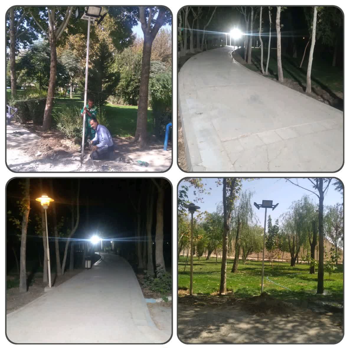 نصب لامپ‌های پرنور و کم‌مصرف در پیاده‌روهای داخلی پارک ساحلی جهت رفع نقاط تاریک و کم‌نور پارک