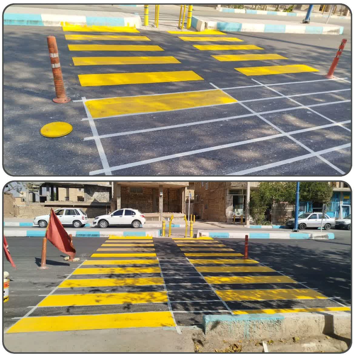 رنگ آمیزی خطوط عابر پیاده در محله افجد پس از انجام روکش آسفالت